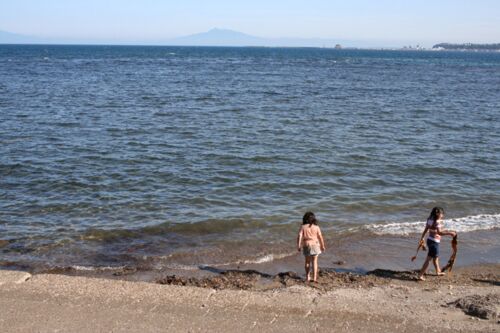 海に来ました。 遊ぶ子ども。プライベートビーチのように人気のない奥まった砂浜。珊瑚のように赤く染まった草。 どこかで見たことがあると思ったら一度来たことがあった岬で、そのときにかかっていた霧のせいでそれに気づかなかった、と灯台を見てわかった…